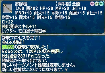 現在スキル60まで上がったので、スキル80にして麒麟棍オグメ練成をするのが楽しみですヽ('Д')ノ