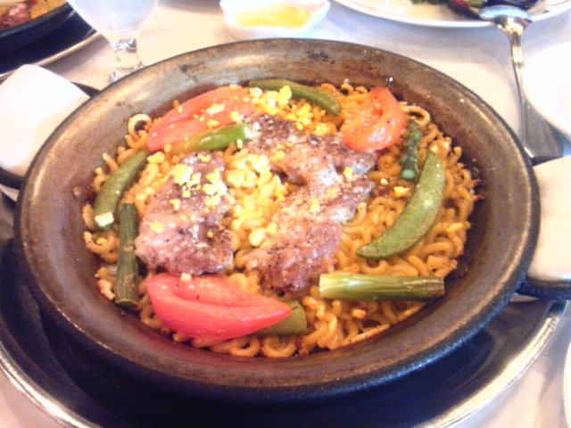友人チョイスの豚とトマトのパスタパエリアです。